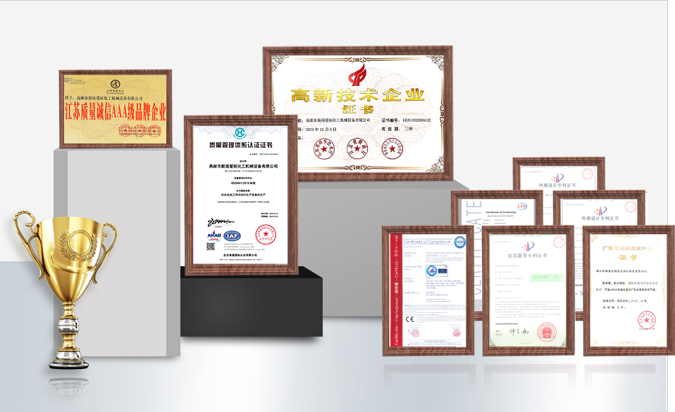 榮獲30余項實用新型和外觀專利證書,乳化機/灌裝機等多款產(chǎn)品被認(rèn)定為高新技術(shù)產(chǎn)品